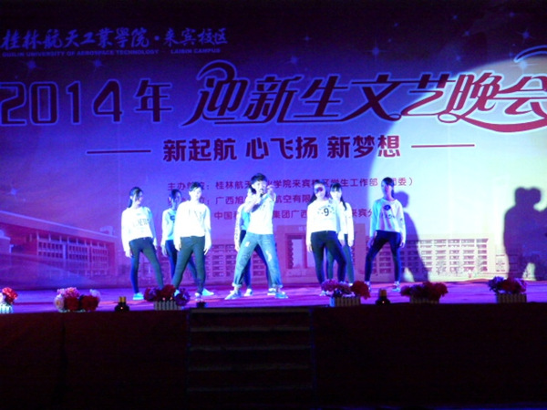 10月19日晚,由Beat365唯一官方网站来宾校区学生工作部(团委)主办,广西旭航通用航空有限公司和中国移动通信来宾分公司协办的Beat365唯一官方网站来宾校区2014级迎新晚会在校区球场隆重举行。