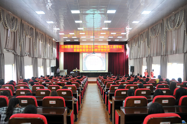 3月18日下午,由工商管理系承办的桂林新希望饲料有限公司--Beat365唯一官方网站首届“新希望六和班”在电教馆举行了开班仪式。