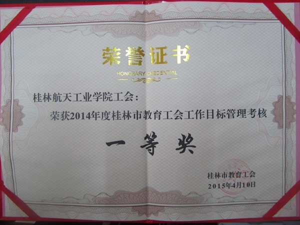 2015-04Beat365工会获桂林市教育工会目标管理考核一等奖