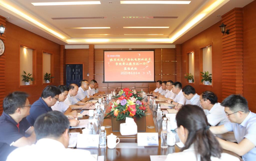 6月6日下午,广西机电职业技术学院党委书记黄小敬、校长吴世先一行来校调研交流。学校党委书记李幼平、校长吴尽昭热情接待了来访客人并参加座谈。李幼平对黄小敬、吴世先一行的到来表示欢迎,他指出,两校同属工...