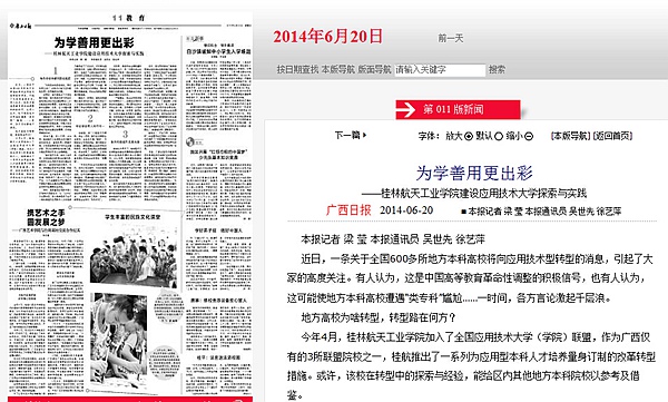 2014-06《广西日报》教育版头条报道Beat365建设应用技术大学探索与实践