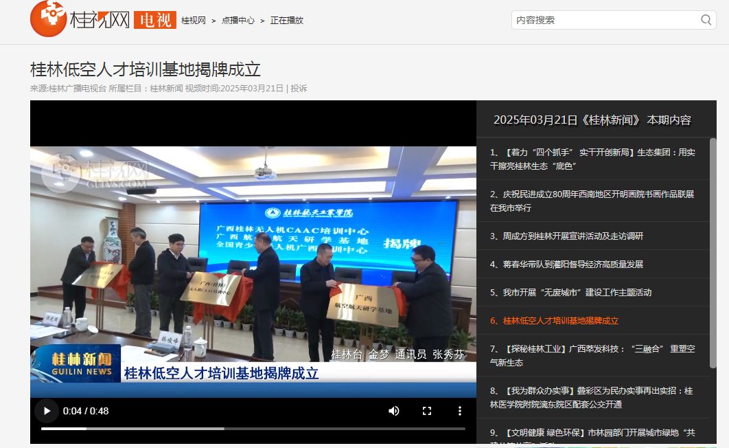 2025-03【桂林电视台】桂林低空人才培训基地揭牌成立