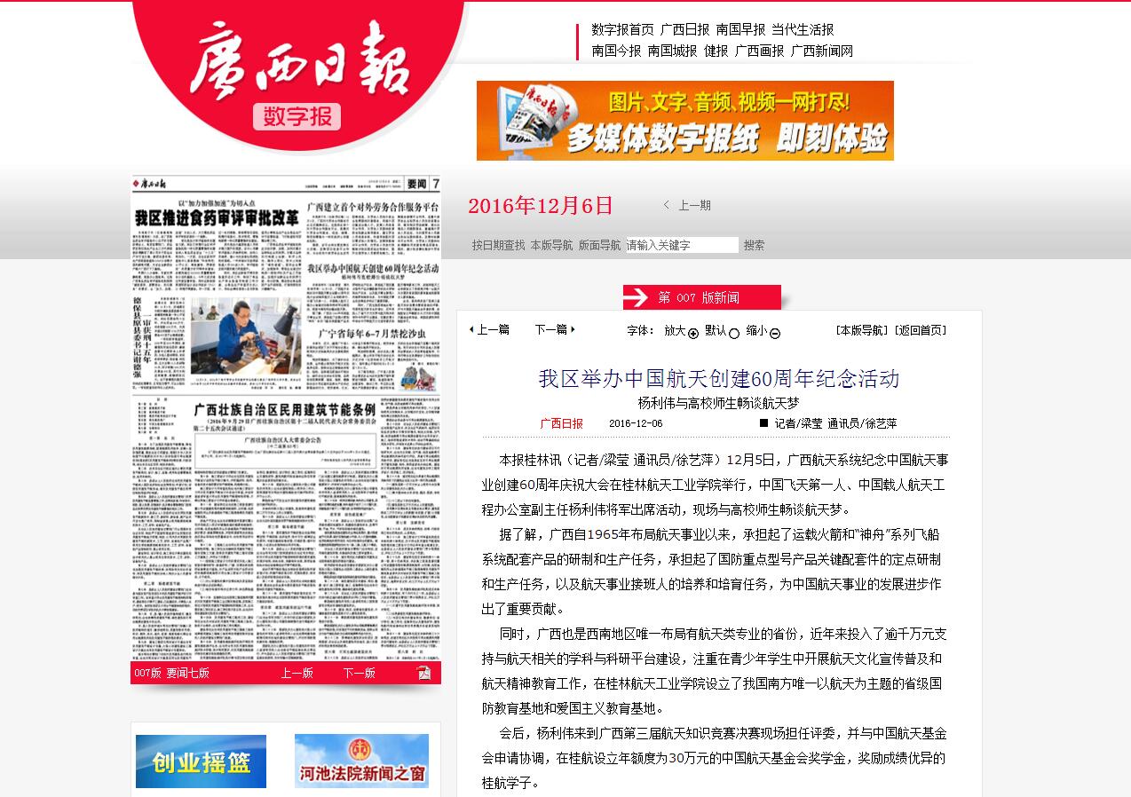 2016-12【广西日报】我区举办中国航天创建60周年纪念活动
