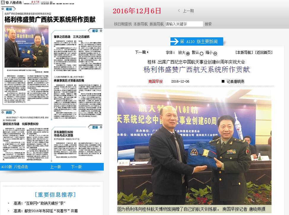 2016-12【南国早报】杨利伟盛赞广西航天系统所作贡献