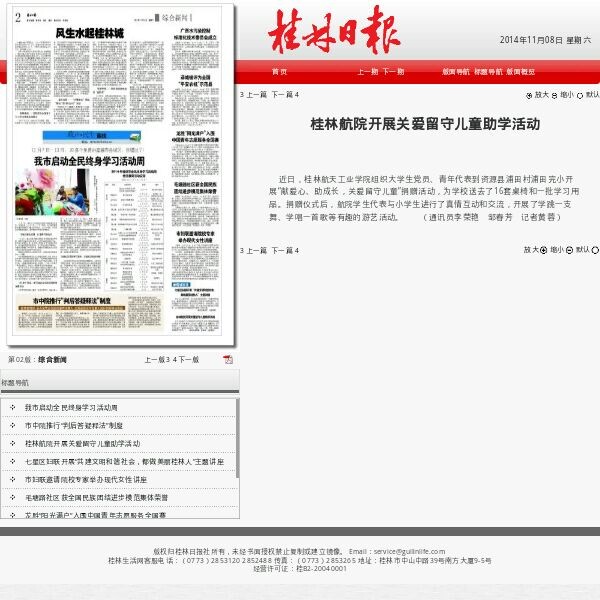 2014-11《桂林日报》:桂林航院开展关爱留守儿童助学活动