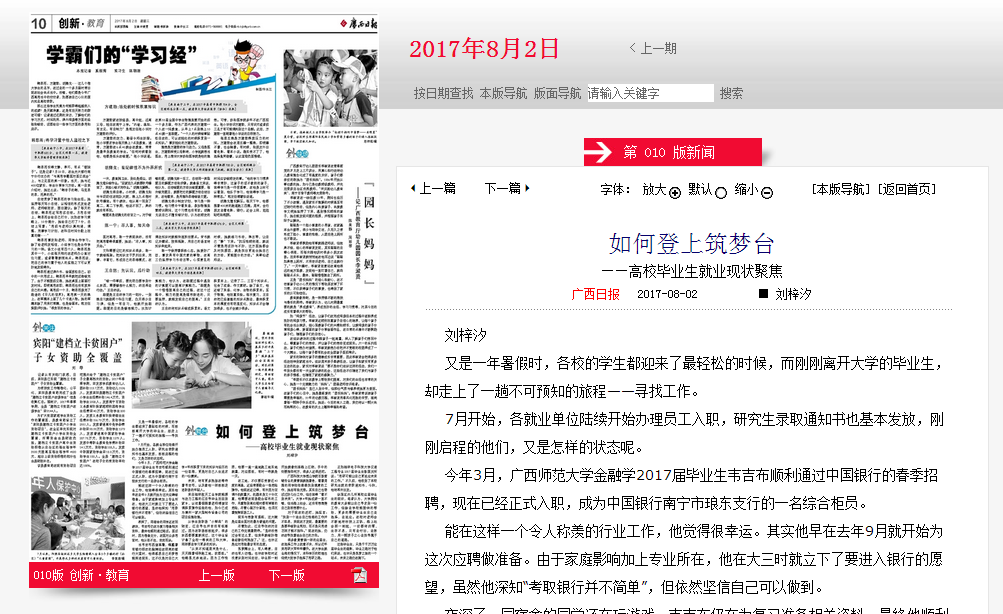 2017-08【广西日报】如何登上筑梦台——高校毕业生就业现状聚焦