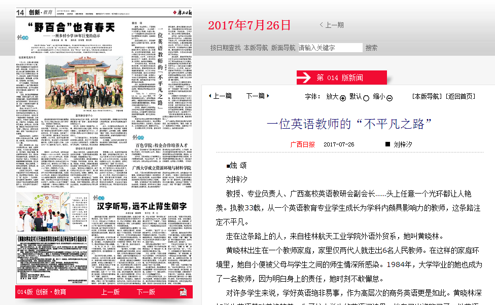 2017-08【广西日报】一位英语教师的“不平凡之路”