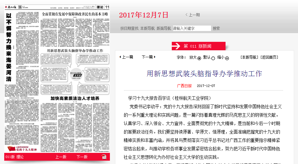 2017-12【广西日报】用新思想武装头脑指导办学推动工作 学习十九大报...