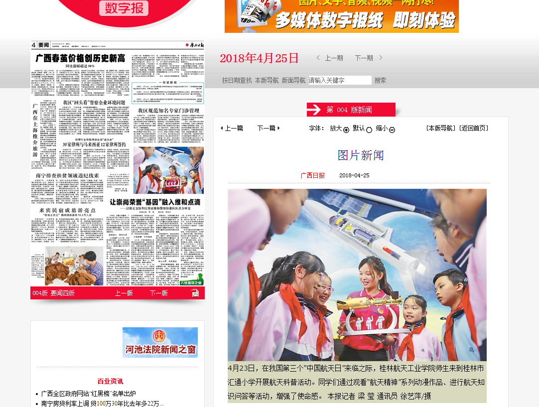 2018-04【广西日报】图片新闻报道Beat365航天科普活动
