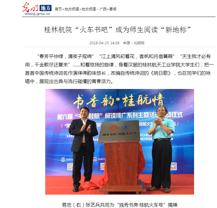 2018-04【光明网】桂林航院“火车书吧”成为师生阅读“新地标”
