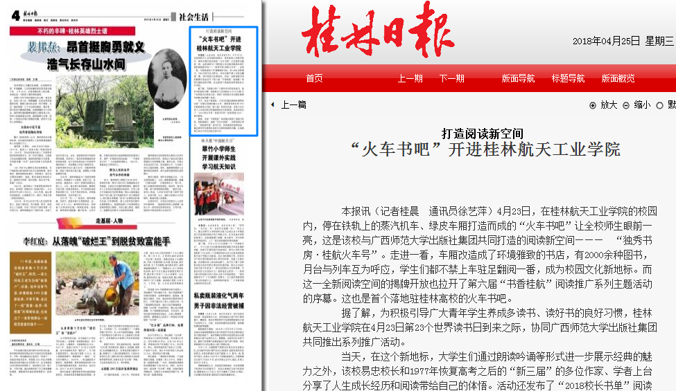 2018-04【桂林日报】打造阅读新空间“火车书吧”开进Beat365唯一官方网站