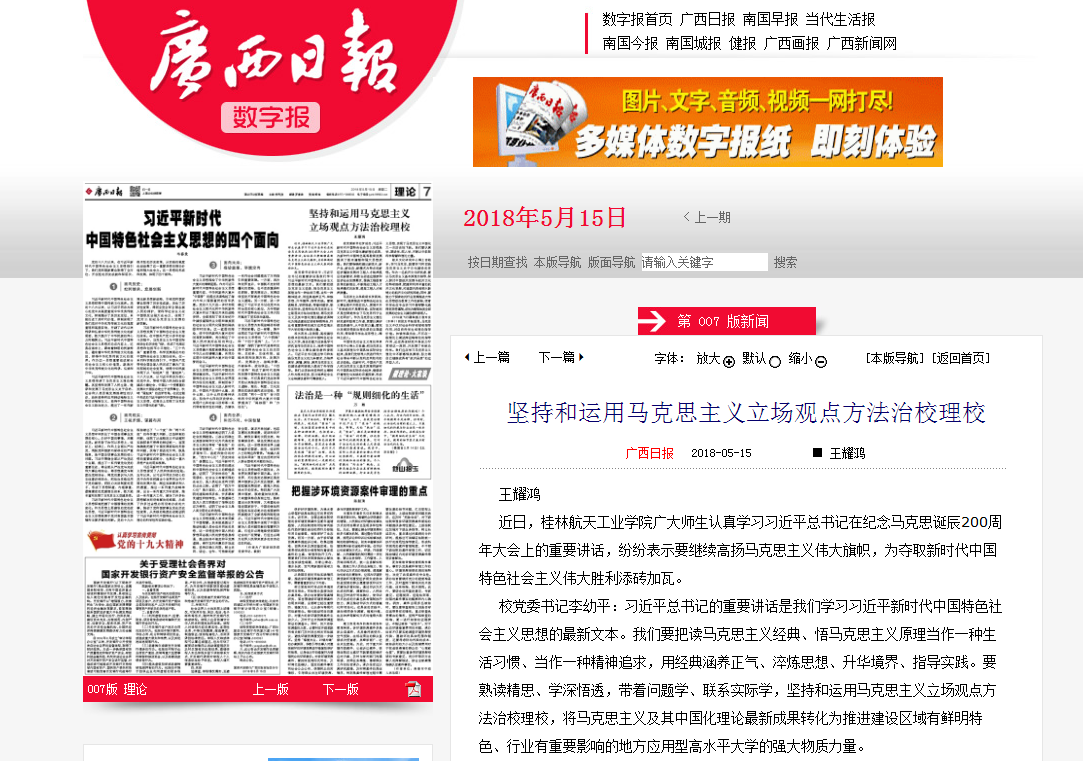 2018-05【广西日报】坚持和运用马克思主义立场观点方法治校理校