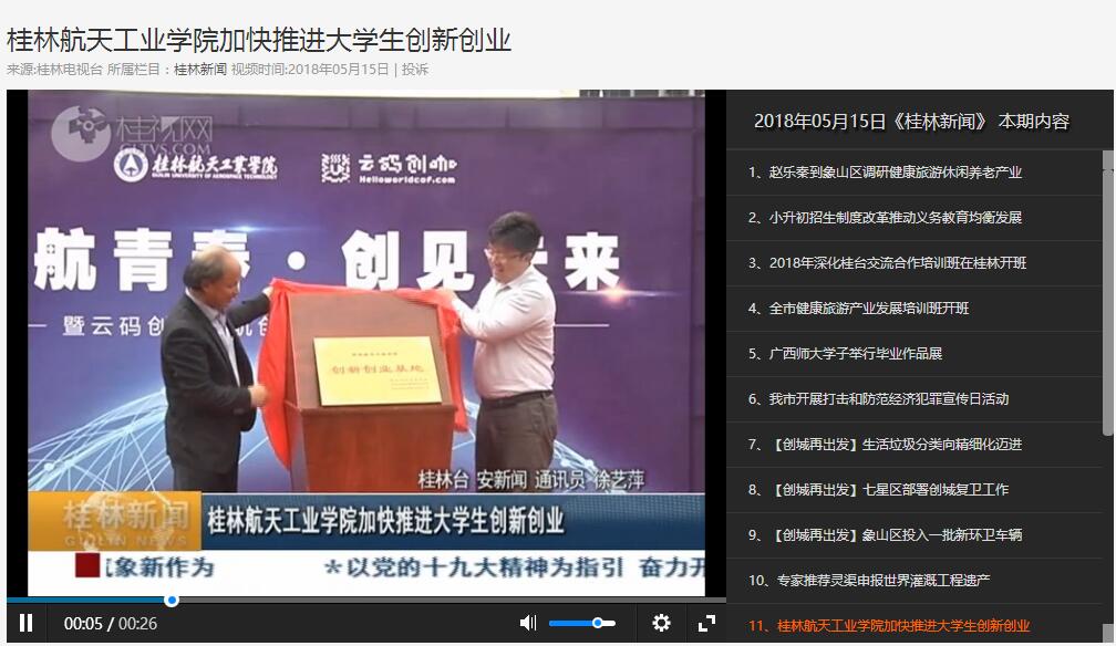 2018-05【桂林电视台】Beat365唯一官方网站加快推进大学生创新创业