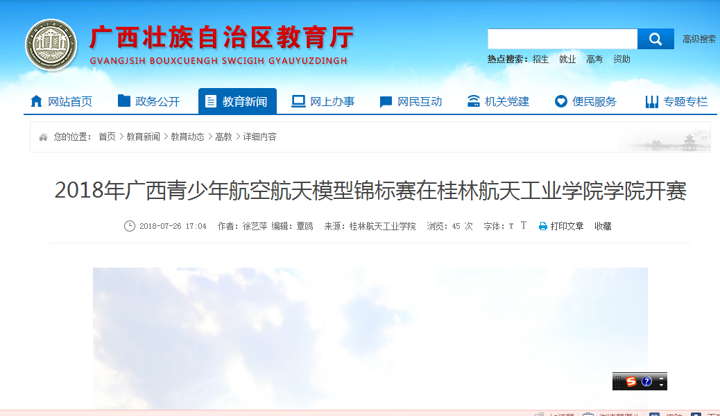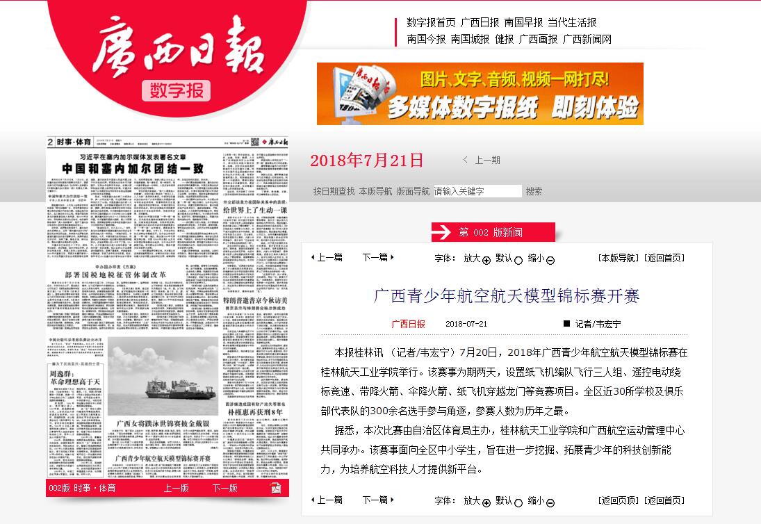 2018-07【广西日报】广西青少年航空航天模型锦标赛开赛