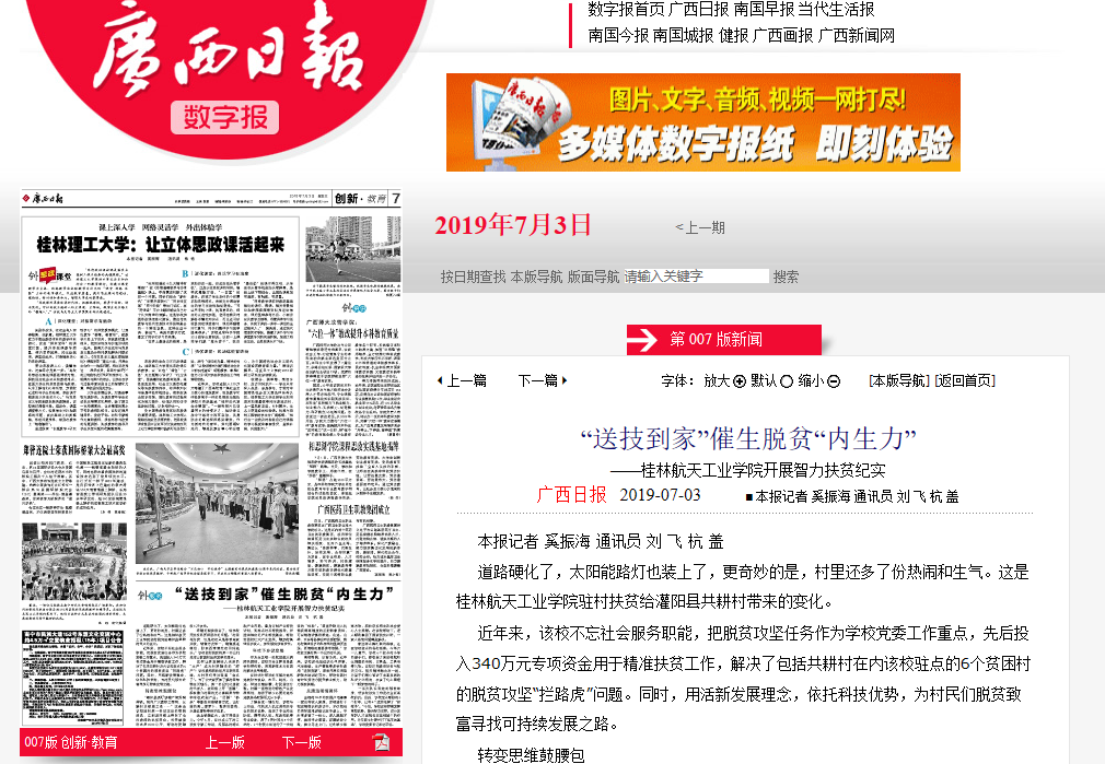 2019-07【广西日报】“送技到家”催生脱贫“内生力”——桂林航天工...