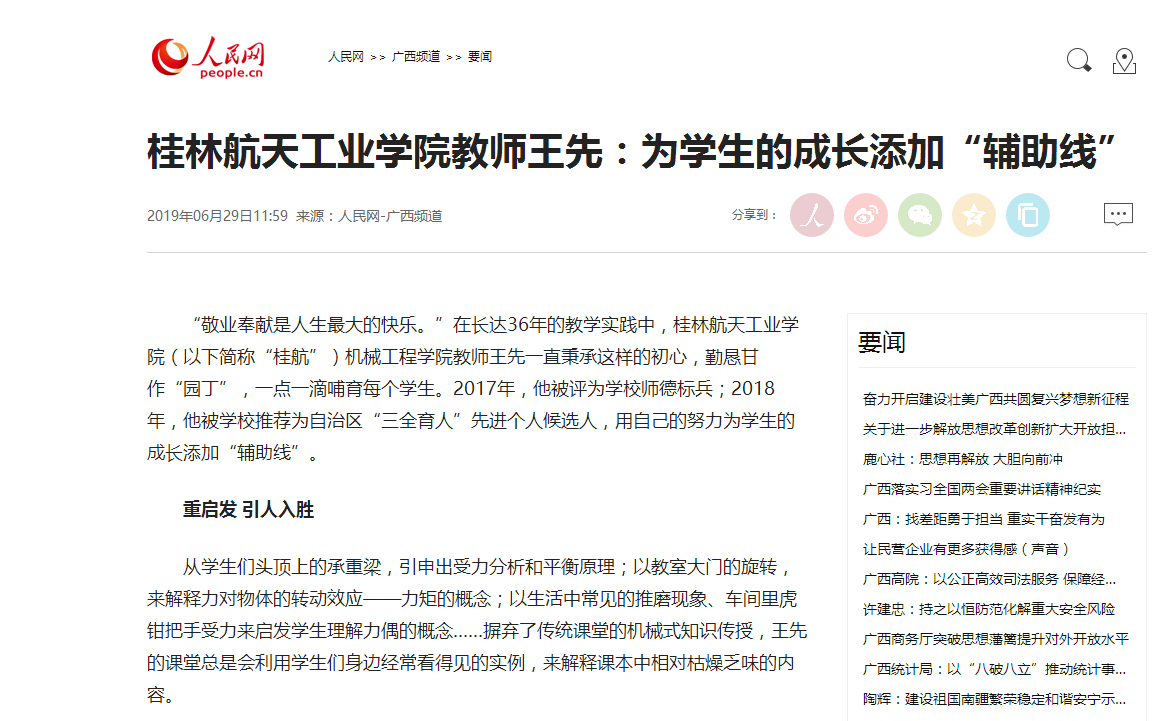 2019-07【人民网】Beat365唯一官方网站教师王先:为学生的成长添加“辅...