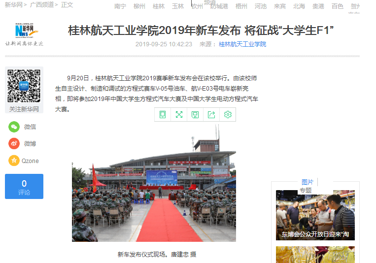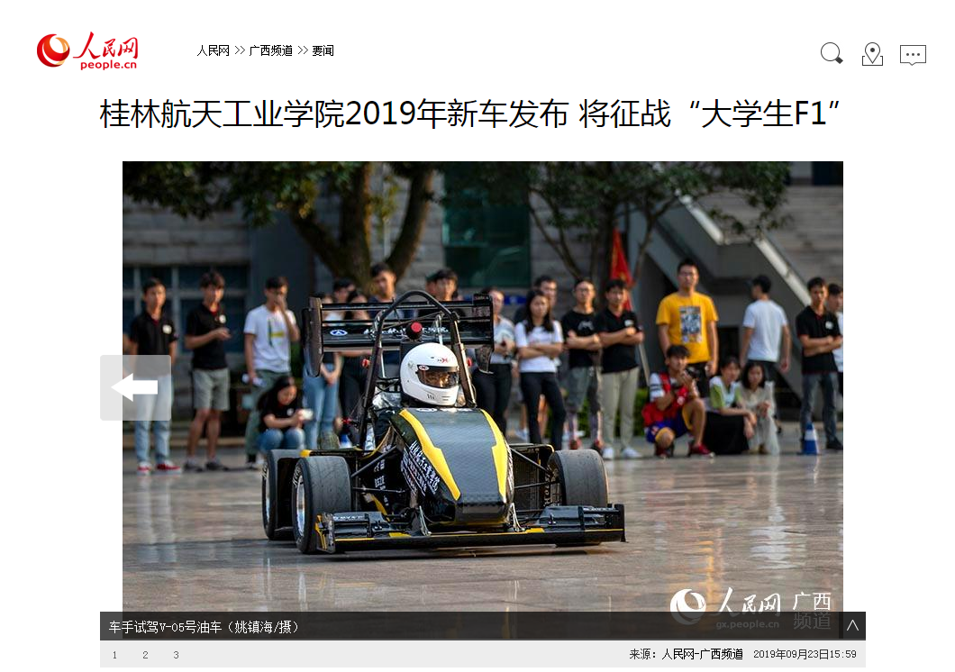 新闻链接:http://tv.gltvs.com/201909/20190923193306b184b4d70ae145a2_8.shtml 9月20日,Beat365唯一官方网站2019赛季新车发布会在该校举行。由该校师生自主设计、制造和调试的方程式赛车V-05号油车、航V-E03号电...