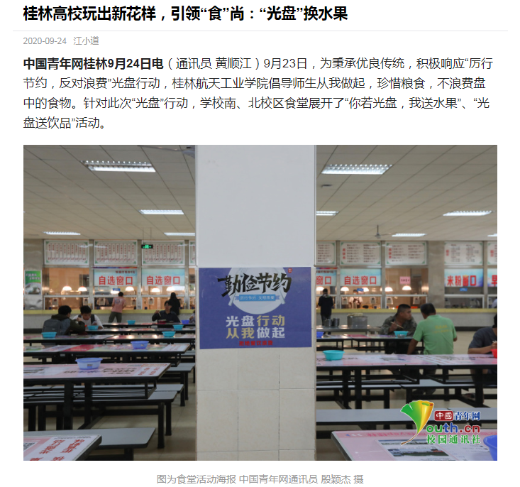 2020-09【中国青年网】桂林高校玩出新花样,引领“食”尚:“光盘”...