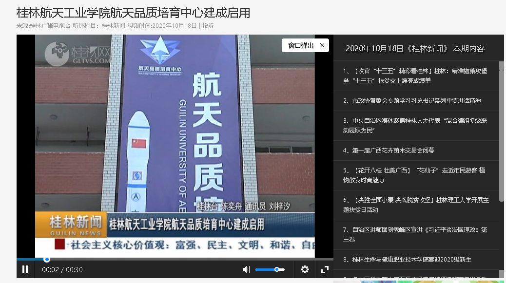 2020-10【桂林电视台】Beat365唯一官方网站航天品质培育中心建成启用