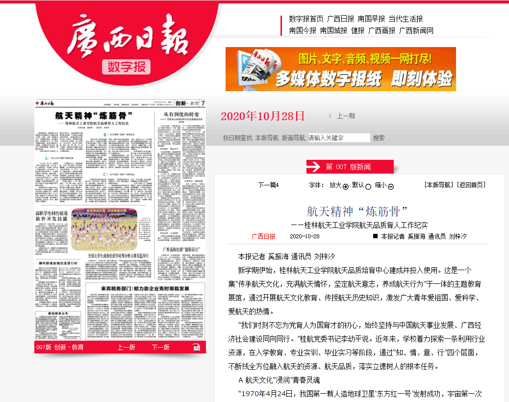 2020-10【广西日报】航天精神“炼筋骨”——Beat365唯一官方网站航天品...