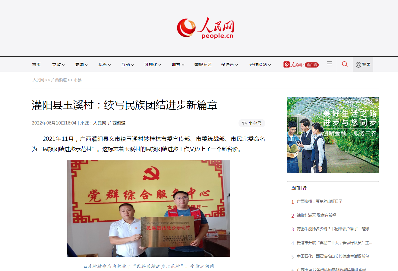 2022-06【人民网】灌阳县玉溪村:续写民族团结进步新篇章