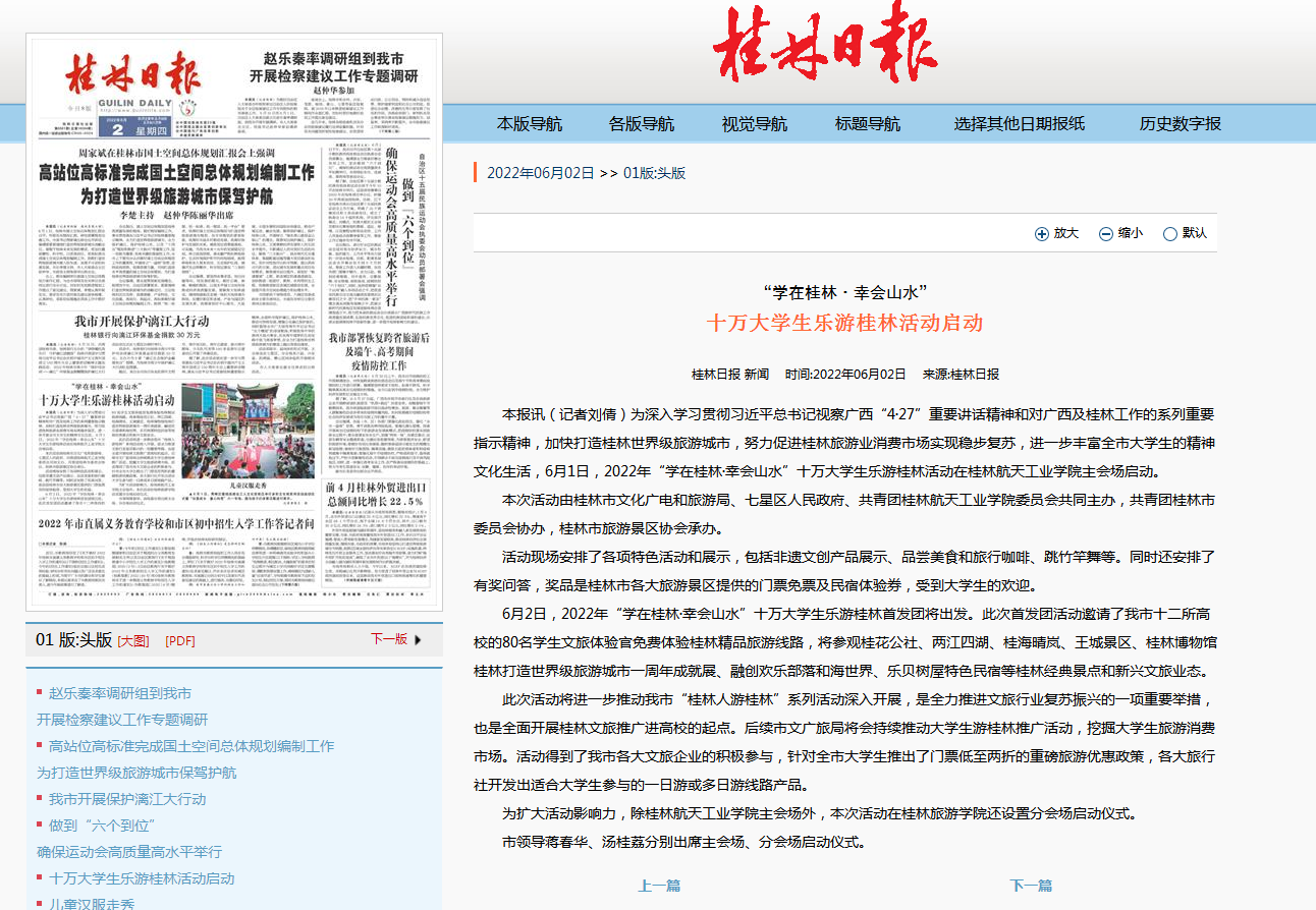 2022-06【桂林日报】“学在桂林·幸会山水”十万大学生乐游桂林活动启动