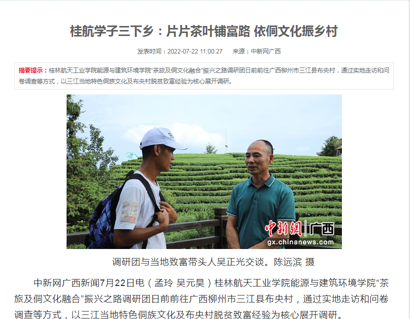 2022-07【中新网】桂航学子三下乡:片片茶叶铺富路 依侗文化振乡村