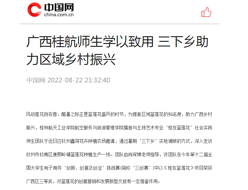 2022-08【中国网】广西桂航师生学以致用 三下乡助力区域乡村振兴