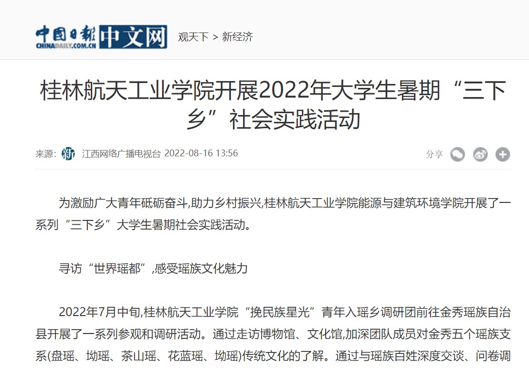 2022-08【中国日报】Beat365唯一官方网站开展2022年大学生暑期“三下乡...