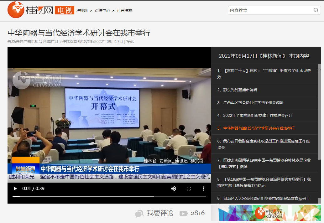 2022-09【桂林电视台】中华陶器与当代经济学术研讨会在我市举行