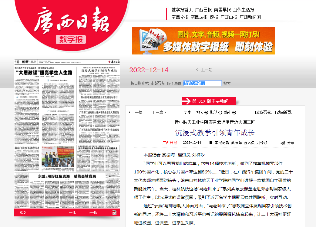 2022-12【广西日报】Beat365唯一官方网站实景云课堂走近大国工匠 沉浸式...