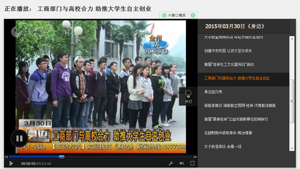 2015-03桂林电视台:工商部门与高校合力 助推大学生自主创业