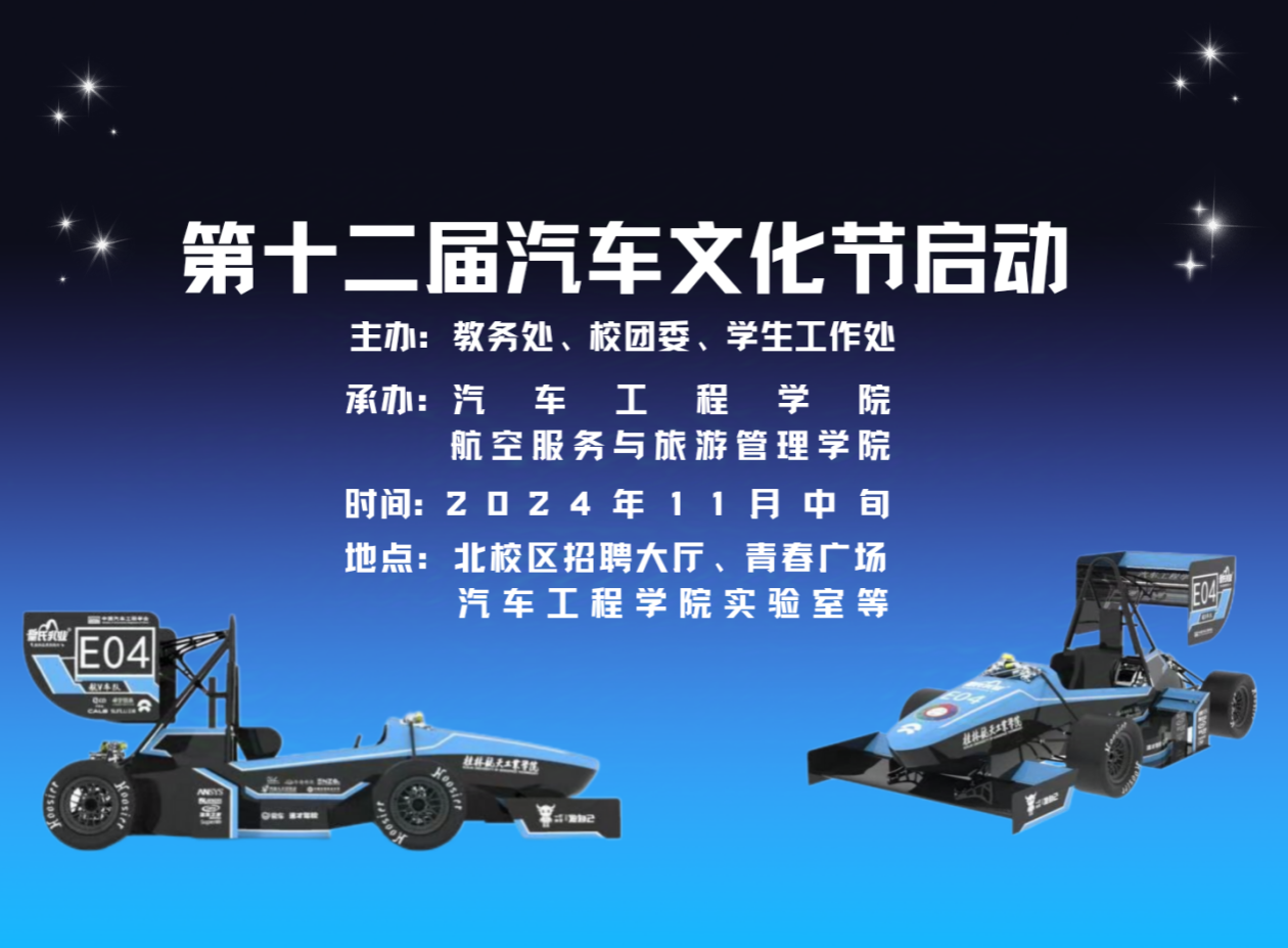 活动简介为展现Beat365学生的风采,提高Beat365学生的综合素质和专业技能,增强同学们服务和竞争意识,特举办第十二届桂航汽车文化节。本次大赛由教务处、校团委、学生工作处主办,汽车工程学院、航空服务与旅游管理学...