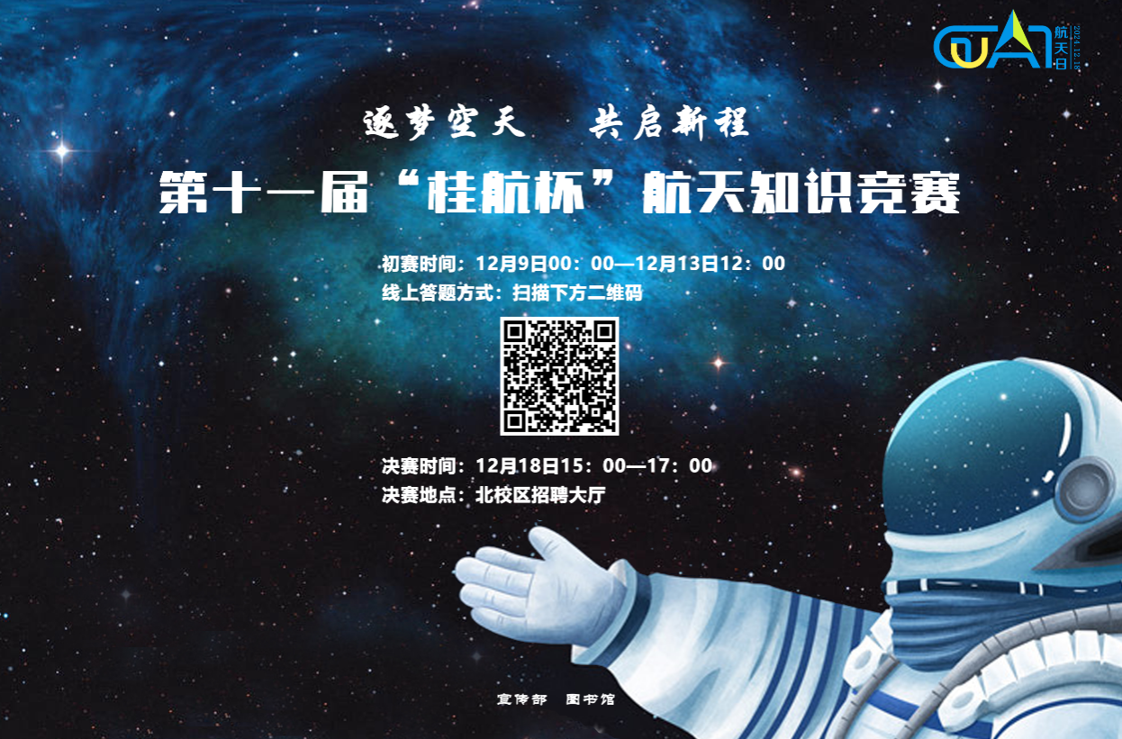 为展示和宣传我国航天事业取得的辉煌成就,促进全校师生不忘初心,同心同力,共圆航天之梦,Beat365特举办Beat365唯一官方网站第十一届“桂航杯”航天知识竞赛,以此大力弘扬航天精神,科学普及航天知识。一、活动主题...