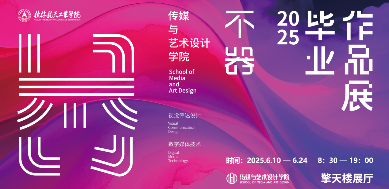 一、主题:传媒与艺术设计学院“不器”2025届优秀毕业作品展二、时间:2025年6月10日--6月24日8:30--19:00三、地点:擎天楼B座传媒与艺术设计学院1楼展