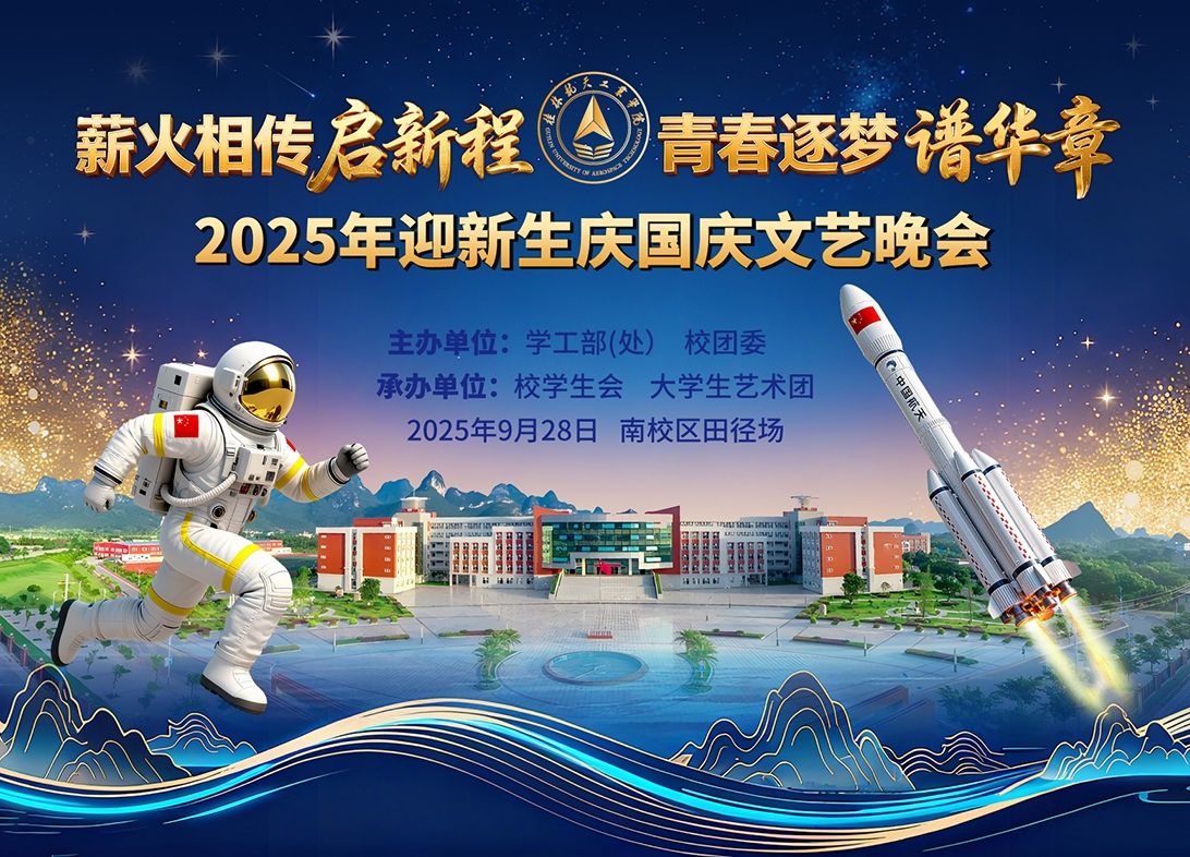 为营造喜迎新生的浓厚氛围,赓续航天精神,共同欢庆祖国76岁生日,决定举办“薪火相传启新程青春逐梦谱华章”2025年迎新生庆国庆文艺晚会,现将有关安排通知如下:一、活动主题薪火相传启新程青春逐梦谱华章——2...