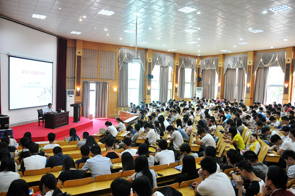 5月21日,《广西日报》桂林记者站站长、高级记者骆展胜应邀莅临Beat365桂林大讲坛,为Beat365近400名学生作了一场题为《新闻人的酸甜苦辣》的专题讲座。