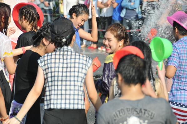 在活动开始前的拜师礼上,出席活动的领导及嘉宾将纯洁及带有鲜花的水撒在留学生的额头上并送上真挚的祝福,寓意着留学生能怀着一切美好和纯净开始新的一年;开场表演环节中,留学生婀娜多姿的祝福舞将现场的气氛带入高潮;在一片欢呼声中,泼水狂欢活动正式开始。同学们用水盆、水瓢、水桶、水枪相互泼洒,顿时广场上水花飞溅,尖叫声、欢呼声随之响起,成了一片欢乐的海洋。留学生们纷纷表示感谢学校的关怀,很开心能在中国庆祝新年、与中国朋友们分享节日的快乐。