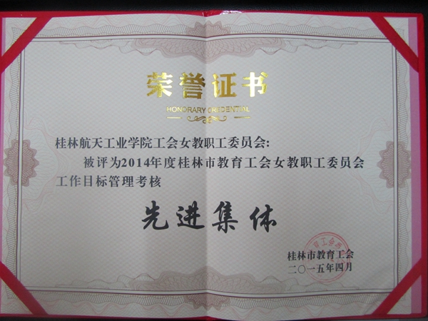 会上,对2014年度教育工会目标管理考核和女教职工委员会目标管理考核工作先进的集体给予了表彰。在此次评优活动中,Beat365工会荣获“桂林市教育工会工作目标管理考核一等奖”,Beat365女教职工委员会荣获“桂林市教育工会女教职工委员会工作目标管理考核先进集体”