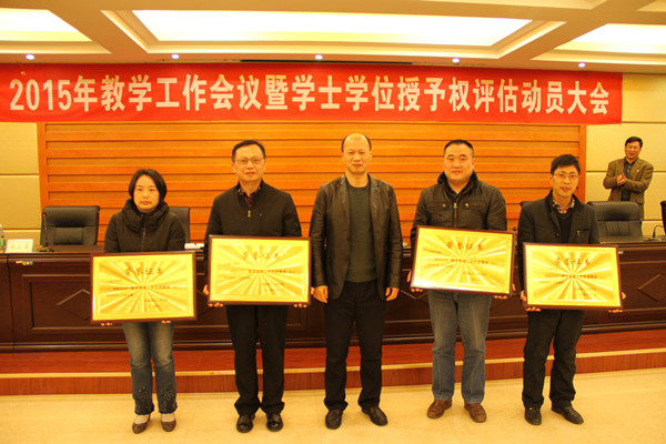 会议还对2014年度教学管理工作先进集体、教学管理先进个人、本科优秀教学质量奖、教学新秀进行了表彰,李幼平书记、易忠院长分别为获奖集体代表和个人颁奖。