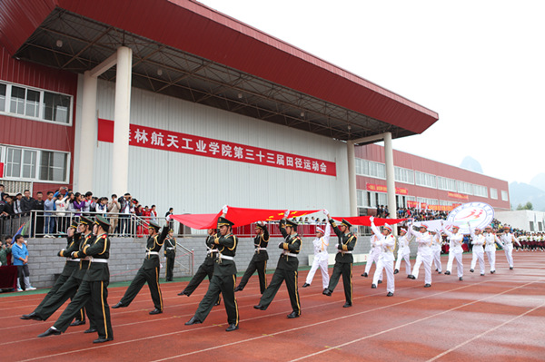 开幕式在嘹亮的国歌声和运动员进行曲中开始,虽然天公不作美,下起了中雨,但大家的热情并未被雨水浇灭。各方阵精神饱满,口号嘹亮,步伐铿锵,整齐划一,在雨中尽情展现体育拼搏精神,充分展示出桂航师生积极向上的精神风貌,赢得了现场观众的阵阵掌声和喝彩。