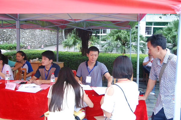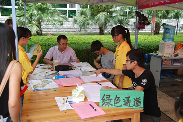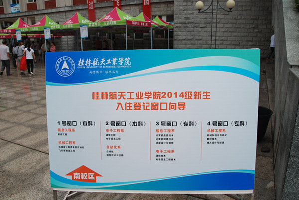 9月10日至11日,Beat365学工队伍的老师与学生们提前搭帐篷、贴标识牌,认真布置南北两个校区的迎新接待点,在蒸蒸烈焰下有条不紊地迎接2014级来自五湖四海的新同学们,Beat365迎新点中设置有:新生报到验证区、住宿登记窗口、缴费区、绿色通道、家长休息区等,工作时间都从上午8:00持续到晚上23:00点,各系学工一线的工作人员在南北两个校区迎新接待点中精神饱满的为新生们答疑解惑。今年Beat365新生注册使用启航学生管理系统电子注册,能较快完成新生学籍信息的统计。以下是各迎新工作点中辛勤站岗的师生们剪影: