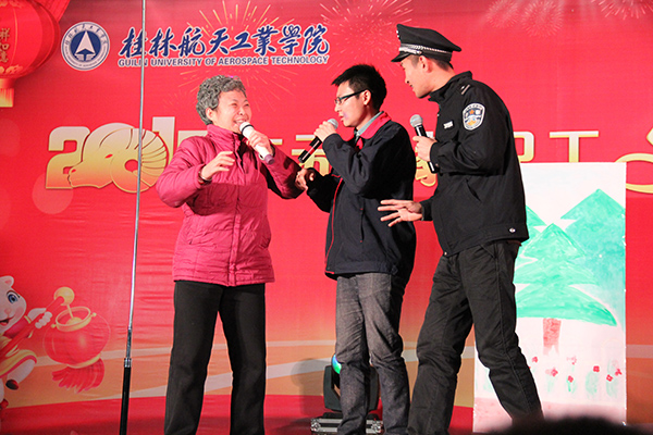 当晚,来自全校十九个分工会的演员联袂登场,为观众奉献了一场视听盛宴。整台晚会节目异彩纷呈,高潮迭起,现场座无虚席,台上台下欢声笑语,掌声雷动,气氛十分热烈。男声独唱《望乡》、《一路上有你》和小合唱《你不知道的事》等,充满了浓浓的情意,唱出了年轻人的专注和执着;活力四射的《欢乐小苹果》、《全民中国梦》等集体舞传达了桂航人健康乐观的精神风貌,将观众的情绪充分调动起来;充满异域风情的印度舞和爵士舞《魅力star》、《crycry》更是动感十足,扣人心弦;富有创意的情景表演《黄河大合唱》、《shake your body》和街舞《十面埋伏》美轮美奂;刚柔相济的武术表演《太极拳》和现代京剧《智斗》展示了中华传统文化的独特魄力;精彩的小品《群英拜寿》、《扶不扶》和环保时装秀《创.艺吧》给群众带来了无穷的乐趣和欢笑;热情奔放的舞蹈《七月火把节》和《喜刷刷》等更是将晚会推向了高潮,得到了现场观众阵阵掌声;最后,晚会在一曲《明天会更好》的悠扬歌声中圆满画上句号。