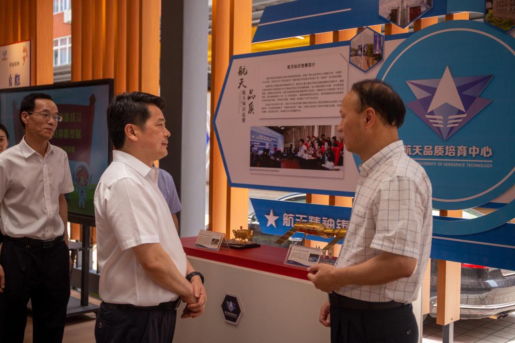 在航天品质中心,李幼平介绍了Beat365的办学历程、办学理念和知名校友,分享了杨利伟将军三次到校时的情景。李楚对学校的航天特色办学表示肯定,他指出,时值神舟十六号顺利升空、神舟十五号安全返回之际,航天院校应该深入贯彻党的二十大报告中关于加快航天强国建设要求,培养一批具有航天品质、展现航天培养特色的应用型人才。