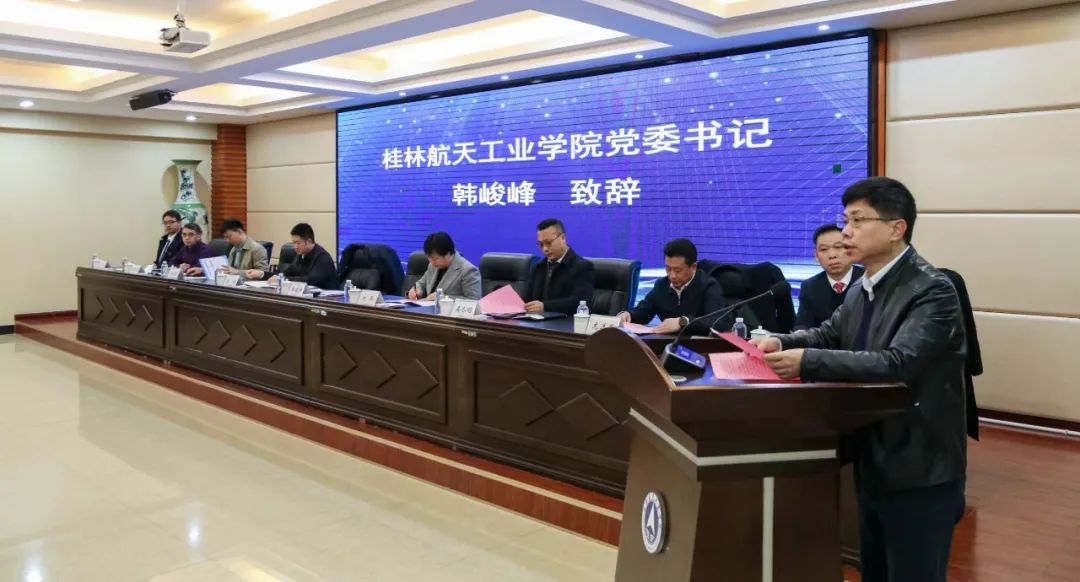 韩峻峰在仪式上致欢迎辞。他代表学校向出席仪式的领导、嘉宾表示感谢。韩峻峰表示,今年正逢习近平总书记提出携手共建更为紧密的中国—东盟命运共同体10周年,学校以此为契机,在中国航天科工集团、广西壮族自治区人民政府的帮助支持下,共同建设中国—东盟航天工程师学院,工程师学院是学校积极融入“一带一路”倡议、服务“走出去”战略的创新举措,也是奋力谱写建设“区域有鲜明特色、行业有重要影响高水平应用型大学”的有力行动。