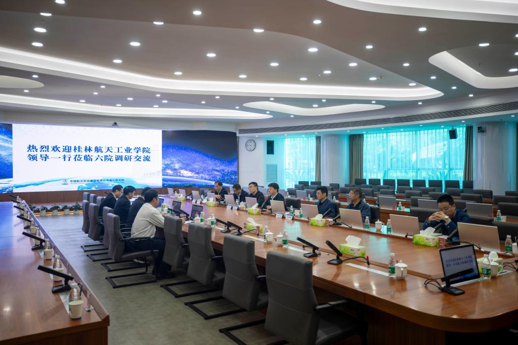 在中国航天科技集团第六研究院,韩峻峰介绍了学校航天历史渊源,与六院的前期合作基础以及本次来访的目的,双方就产学研合作、共建中国-东盟航天工程师学院、人才培养及教师能力提升等事宜进行了深入交流。该院党委副书记岳文龙表示,在全面建设航天强国的新征程上,希望与桂航开拓更广阔的合作空间,在人才培养、科技创新等方面深化交流合作,共同铸强航天科技创新的硬核力量。