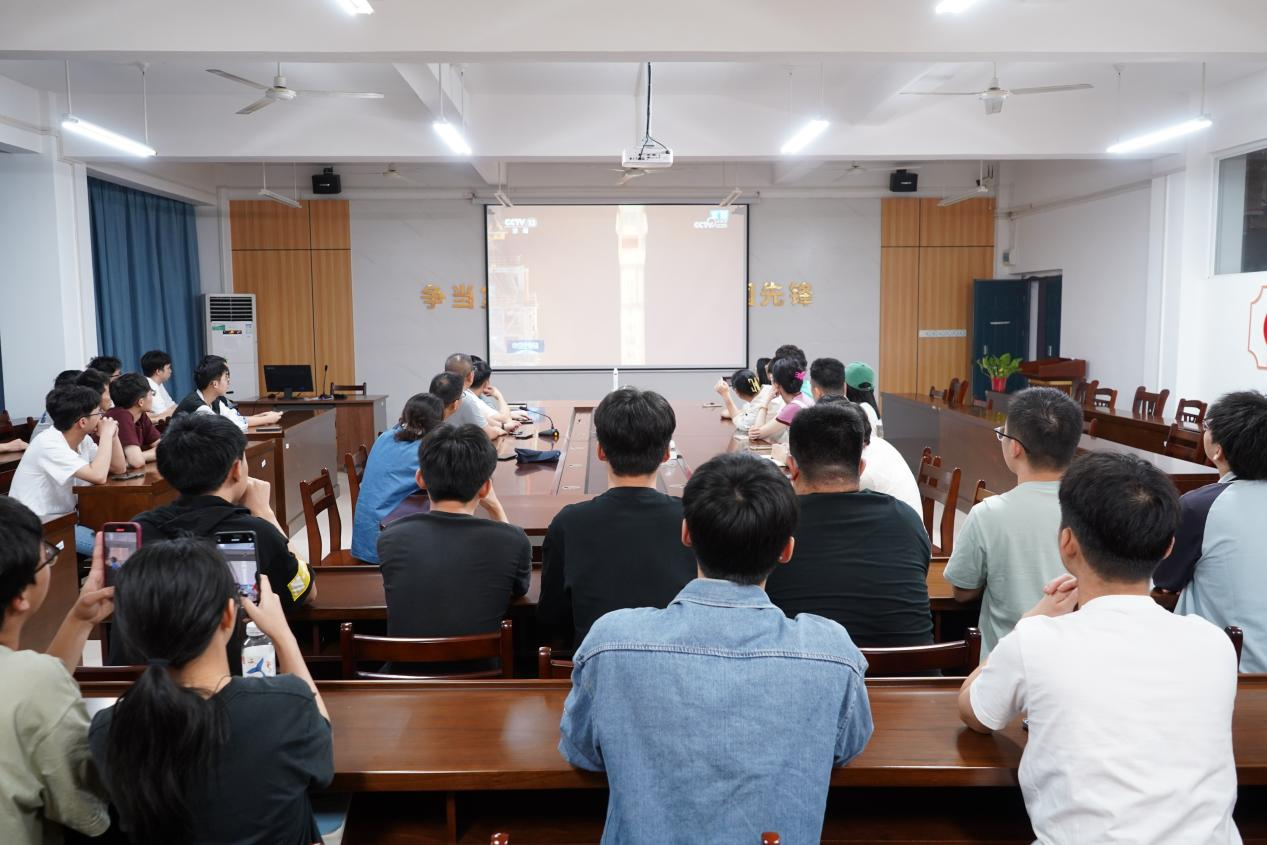 机电与工程学院师生在会议室内观看发射直播