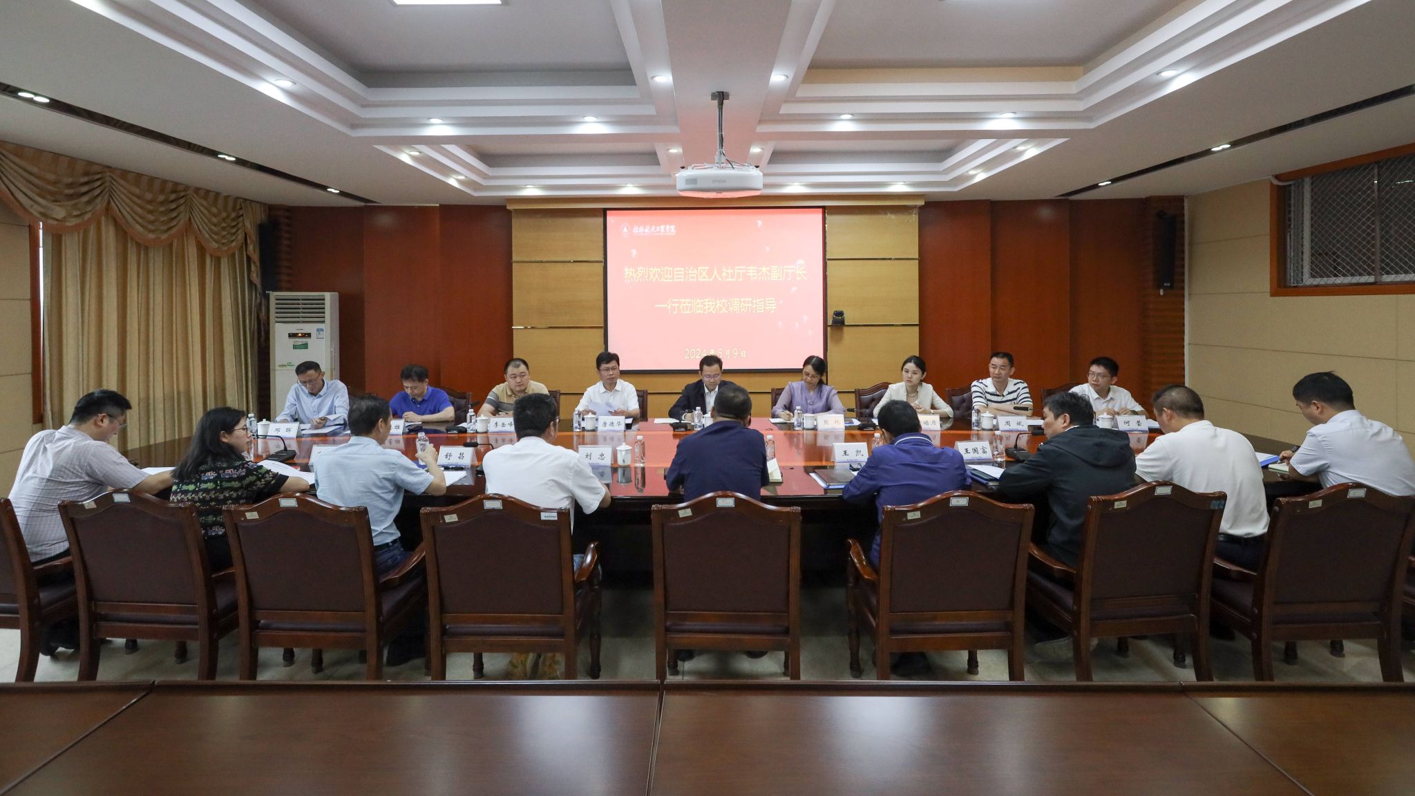 5月9日,自治区人力资源和社会保障厅党组成员、副厅长韦杰一行到Beat365调研。校长吴尽昭热情会见韦杰一行并出席座谈会。自治区人力资源和社会保障厅专业技术人员管理处、就业促进处、农民工工作处、自治区人才服务中心及办公室,桂林市人社局、人才服务中心,Beat365党校办、宣传部、学工部(处)、人事处、教务处等相关人员参加会议。