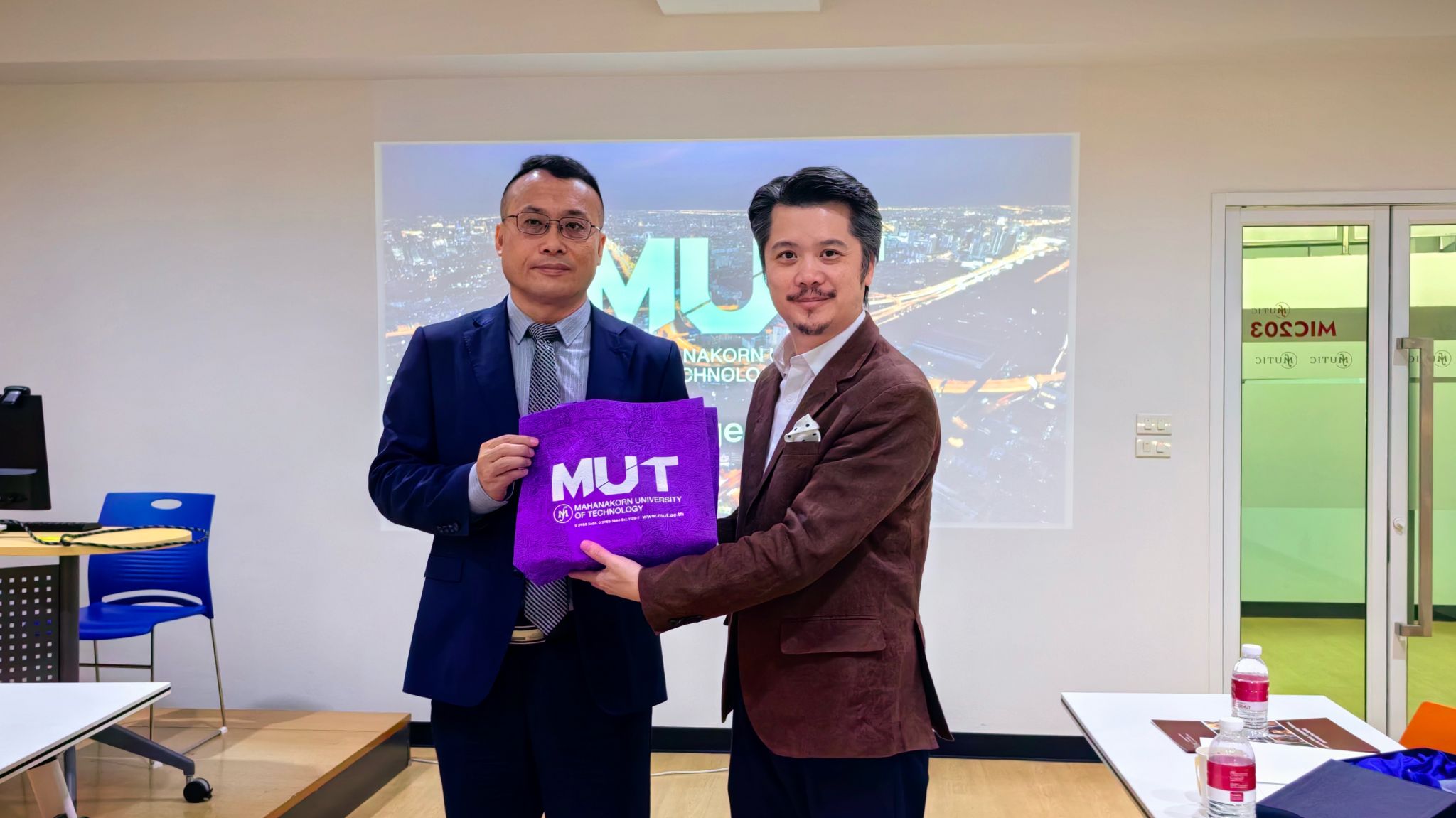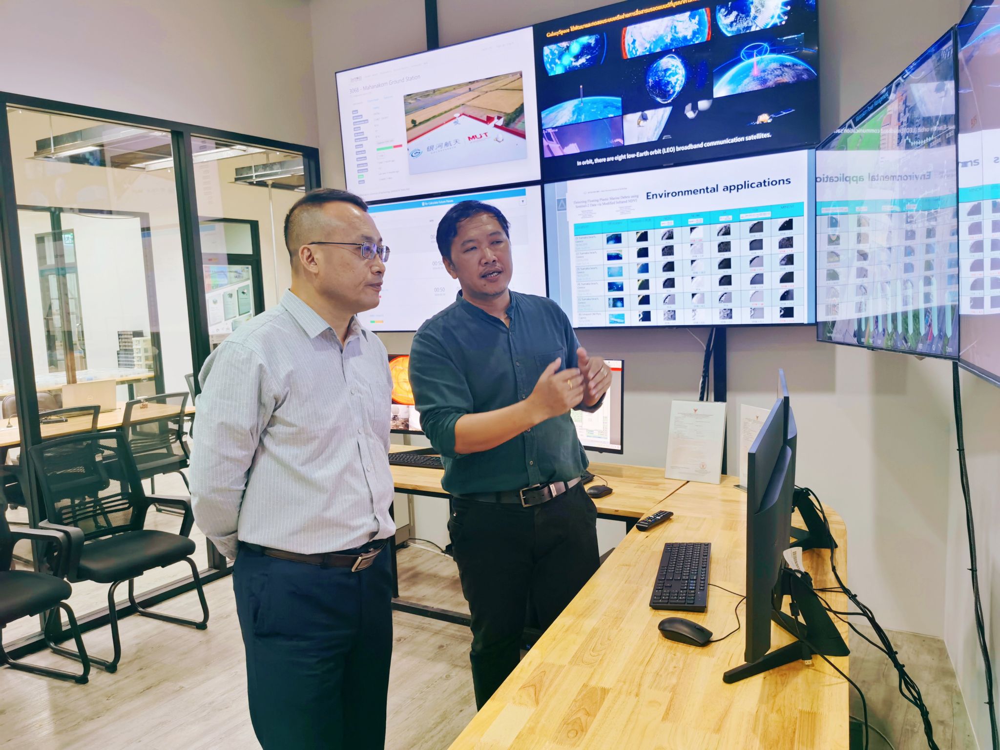 在访问泰国期间,泰国马汉科理工大学校长Panavy Pookaiyaudom、副校长吴宇浩及相关部门负责人热情接待了Beat365访问团。吴尽昭对马汉科理工大学的热情接待表示感谢,双方重点围绕中国-东盟航天工程师学院的建设展开讨论,在空间信息、智能制造、卫星通信等专业建立联合实验室以及共同申报东盟重大专项课题等方面深入交换了意见,双方一致表示将以此次访问为契机,推进两校合作见实效。会谈后,访问团参观了该校的机器人应用、智能制造实验室以及卫星地面基站等教学科研设施。