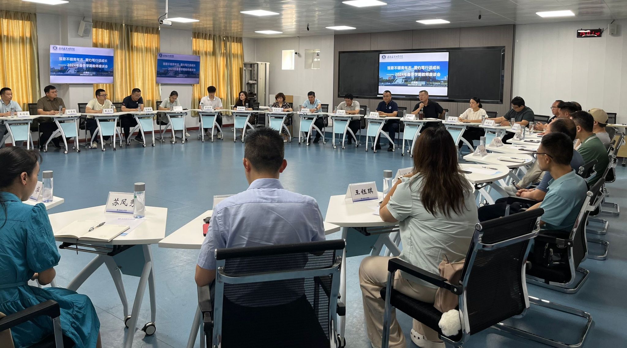 为进一步发挥青年教师在学校建设中的重要作用,倾听青年教师心声,激发青年教师的工作热情,推进学校高质量发展,6月13日下午,学校在飞天楼402室举行“弦歌不辍青年志蓄力笃行话成长”——2024年春季学期教师座谈会。校党委副书记、校长吴尽昭与26名教师代表齐聚一堂,交心谈心。副校长胡泽民出席并主持活动,党(校)办、人事处、教务处、财务处、科技处、航天航空科技城项目建设指挥部等职能部门负责人及教师代表参加座谈。